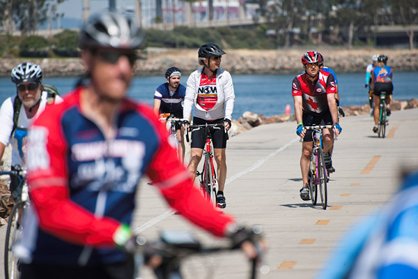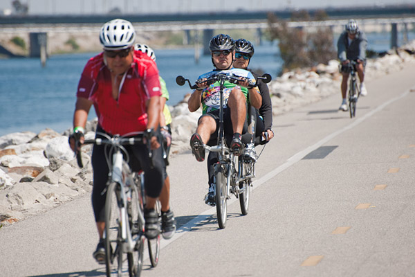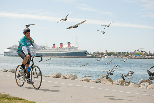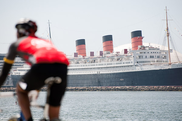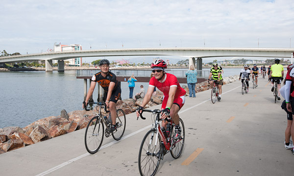 LA River Ride cyclists arrive at Shoreline Aquatic Park in Long Beach, California, Sunday, June 5, 2011, after riding 35 miles from Griffith Park.
