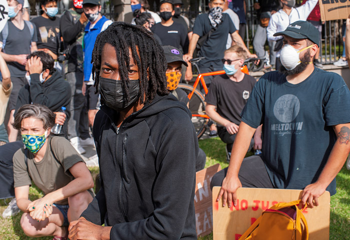 Los Angelenos protest the brutal Memorial Day killing of George Floyd by Minneapolis Police in the Fairfax district of Los Angeles. — Saturday, May 30, 2020